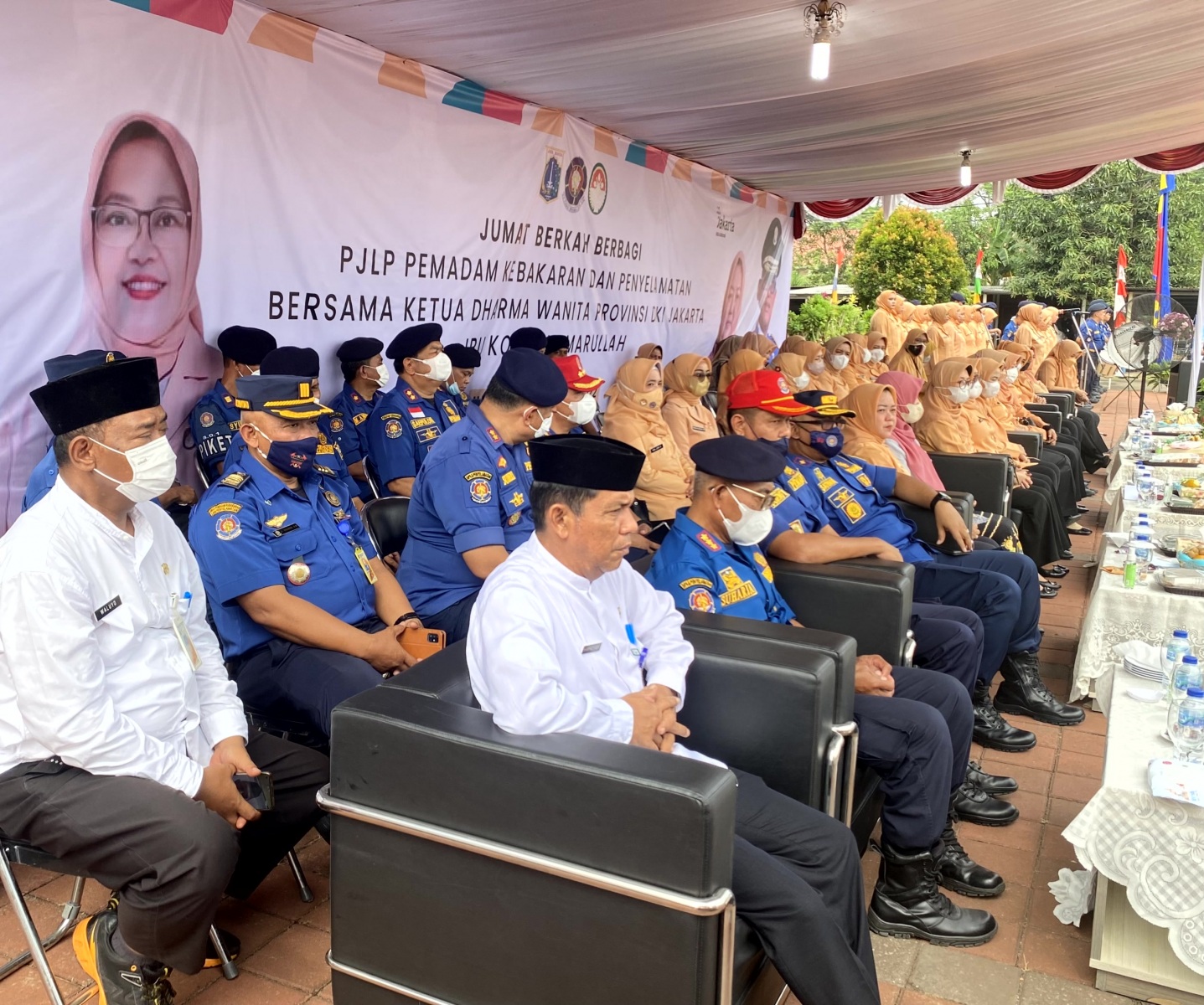 Jumat, 9 September 2022 Bidang Sosial Budaya Dharma Wanita Persatuan Provinsi DKI Jakarta, yang bertempat di Rusun Damkar Cengkareng Barat, Jakarta Barat. melaksanakan kegiatan Jumat Barokah dengan membagikan 600 box nasi bungkus kepada PJLP Dinas Gulkarmat. Kegiatan berbagi ini merupakan salah satu bentuk kepedulian anggota DWP terhadap sesama. Hadir Ketua DWP Provinsi DKI Jakarta Ibu Komariah Marullah dan Kadis Gulkarmat Bapak Satriadi Gunawan.