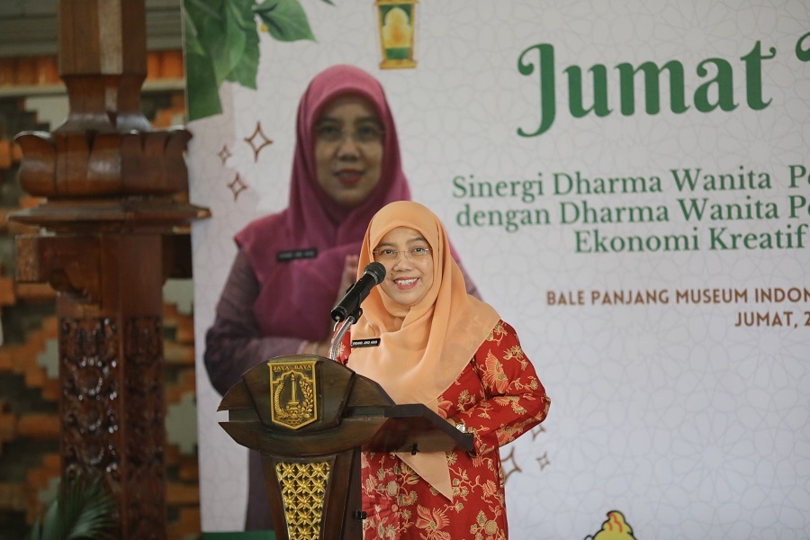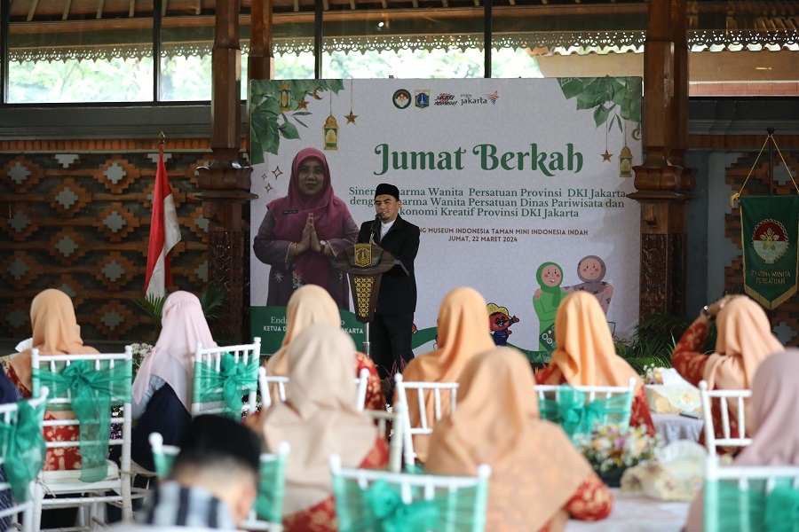 Bertempat di Bale Panjang Museum Indonesia TMII Jakarta Utara, Jumat 22 Maret 2024, Dharma Wanita Persatuan Provinsi DKI Jakarta bersama DWP Disparekraf Provinsi DKI Jakarta menyelenggarakan Jumat Barokah dengan memberikan 300 paket sembako kepada PJLP dan tenaga honorer yang berada di lingkungan Disparekraf Provinsi DKI Jakarta.