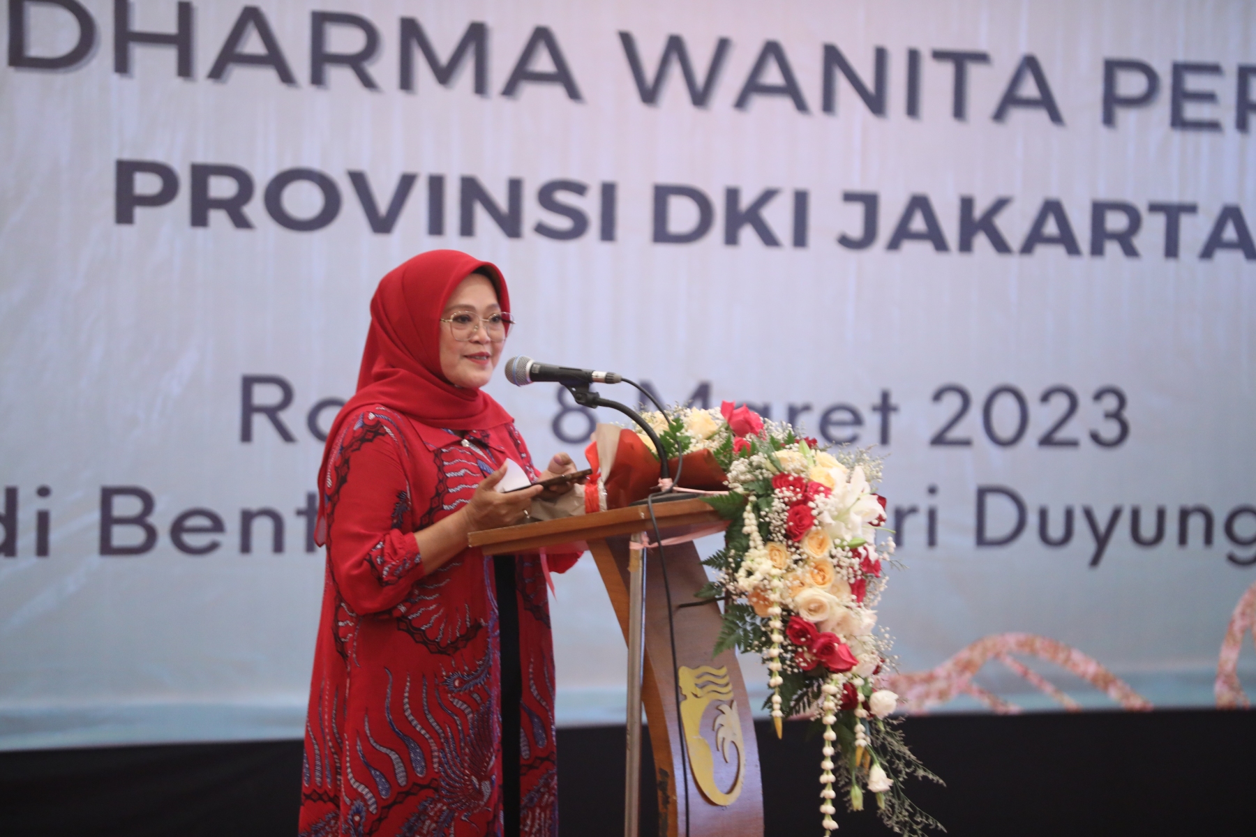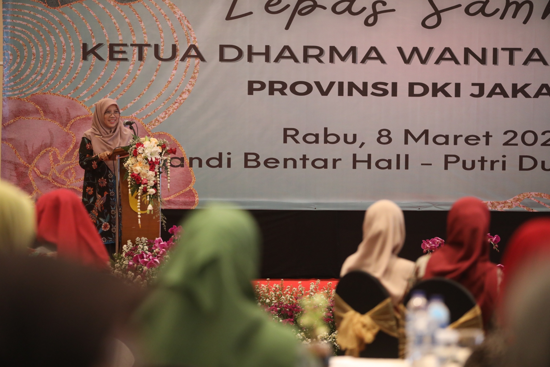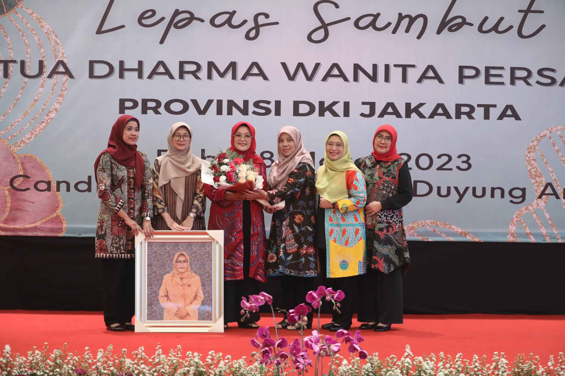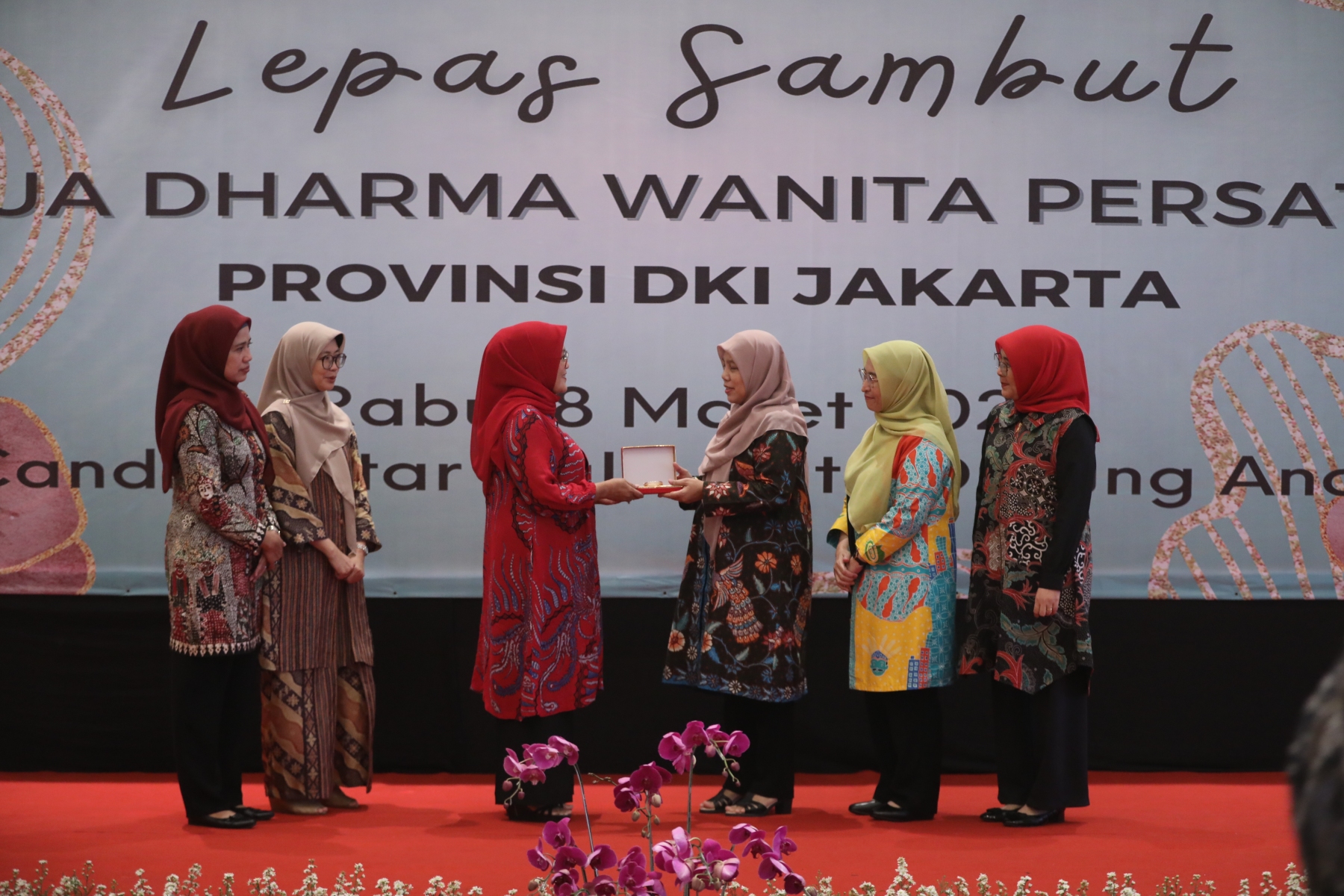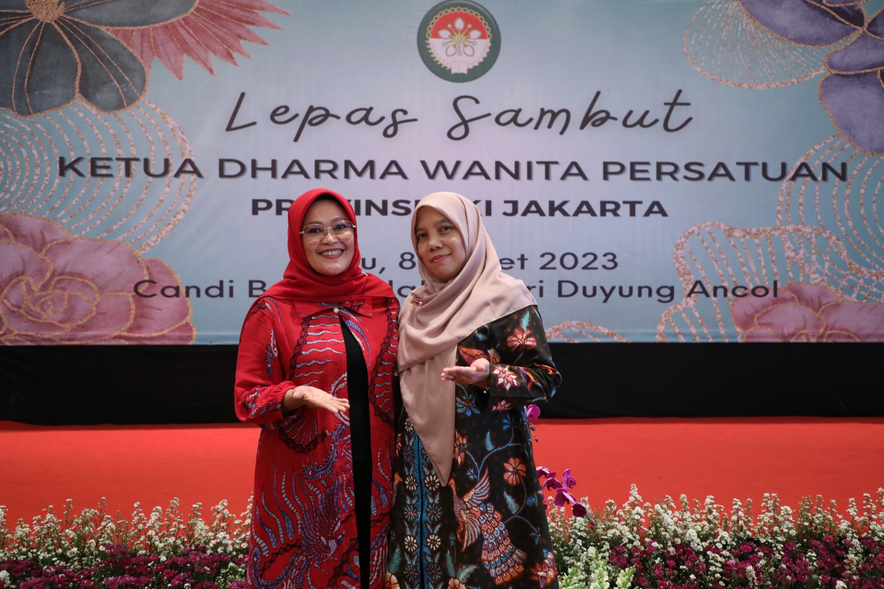 Lepas sambut Ketua Dharma Wanita Persatuan Provinsi DKI Jakarta dari Ibu Komariah Marullah, Ketua DWP Provinsi DKI Jakarta Periode Februari 2021 s.d Februari 2023 kepada Ibu Endang Lestari Joko Agus sebagai Ketua Antar waktu DWP Provinsi DKI Jakarta Masa Bhakti 2019-2024.