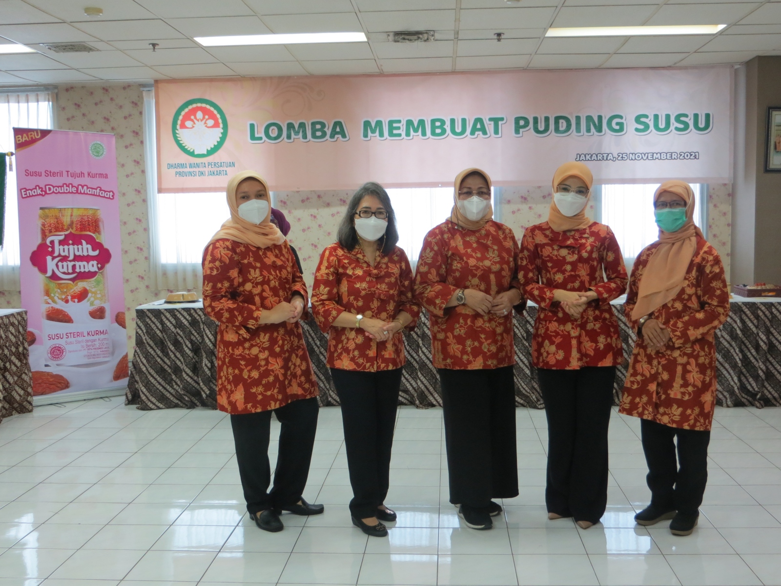 Kamis, 25 November 2021 Bidang Ekonomi DWP Provinsi DKI Jakarta dalam rangka memperingati HUT DWP ke- 22 tahun 2021 mengadakan lomba membuat puding berbahan dasar Susu Steril Tujuh Kurma yang bekerjasama dengan PT Mayora Indah Tbk. Kegiatan ini di ikuti oleh 35 DWP Unsur Pelaksana, sebagai pemenang terpilih DWP DCKTRP Juara I, DWP DPMPTSP Juara II, DWP Kota Adm. Jakarta Pusat Juara III, DWP Bapenda Harapan I, DWP Kota Adm. Jakarta Timur Harapan II dan DWP BKD Harapan III.