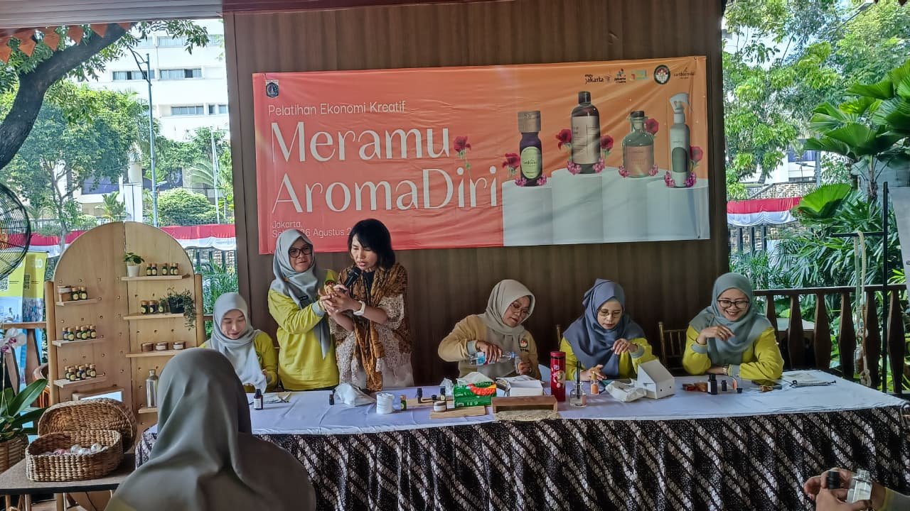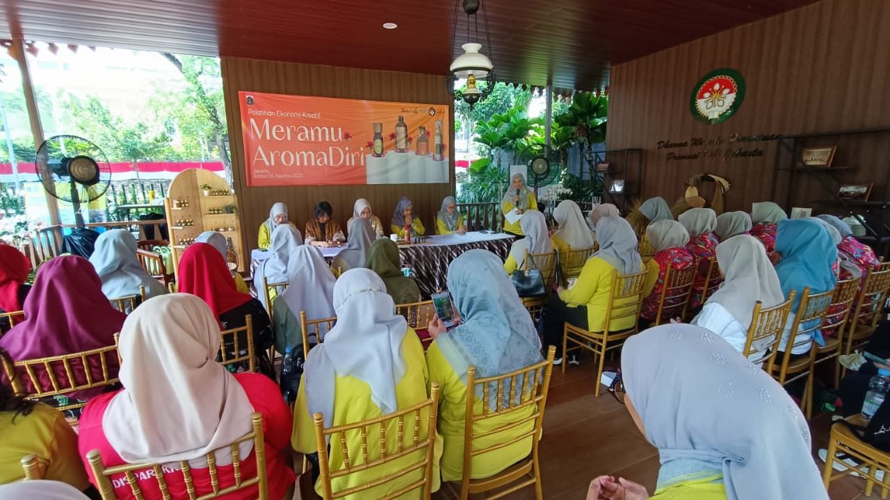 Bidang ekonomi Dharma Wanita Persatuan Provinsi DKI Jakarta bertempat di stand DWP DKI Pameran Flona Fauna Lapangan Banteng Jakarta Pusat melaksanakan program kerja Pelatihan Ekonomi Kreatif dengan tema “Meramu Aroma Diri”. Sebagai narasumber adalah Ibu Oni Olivya, Founder Earthsensial dan peserta pelatihan berasal dari anggota DWP UP DKI Jakarta.