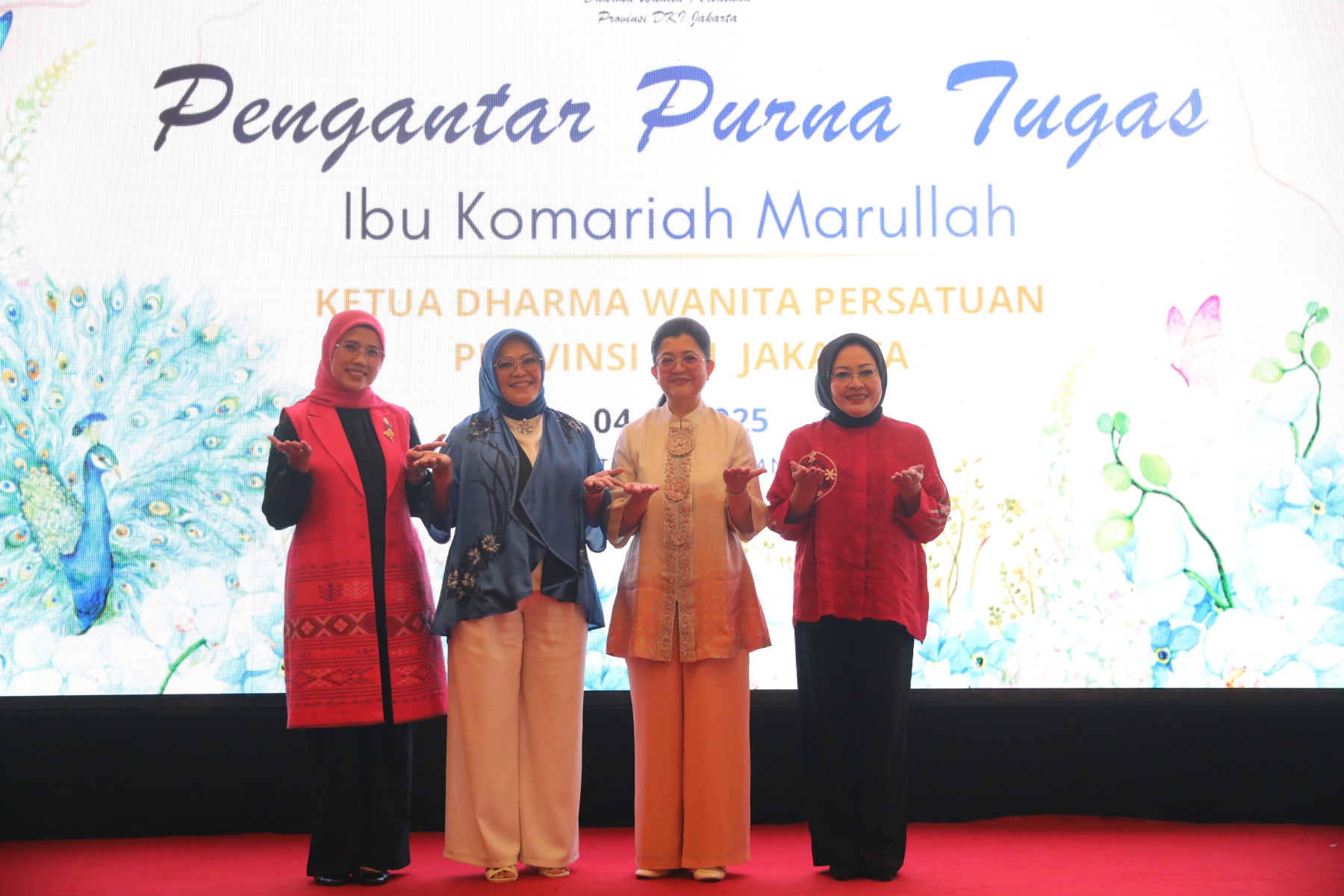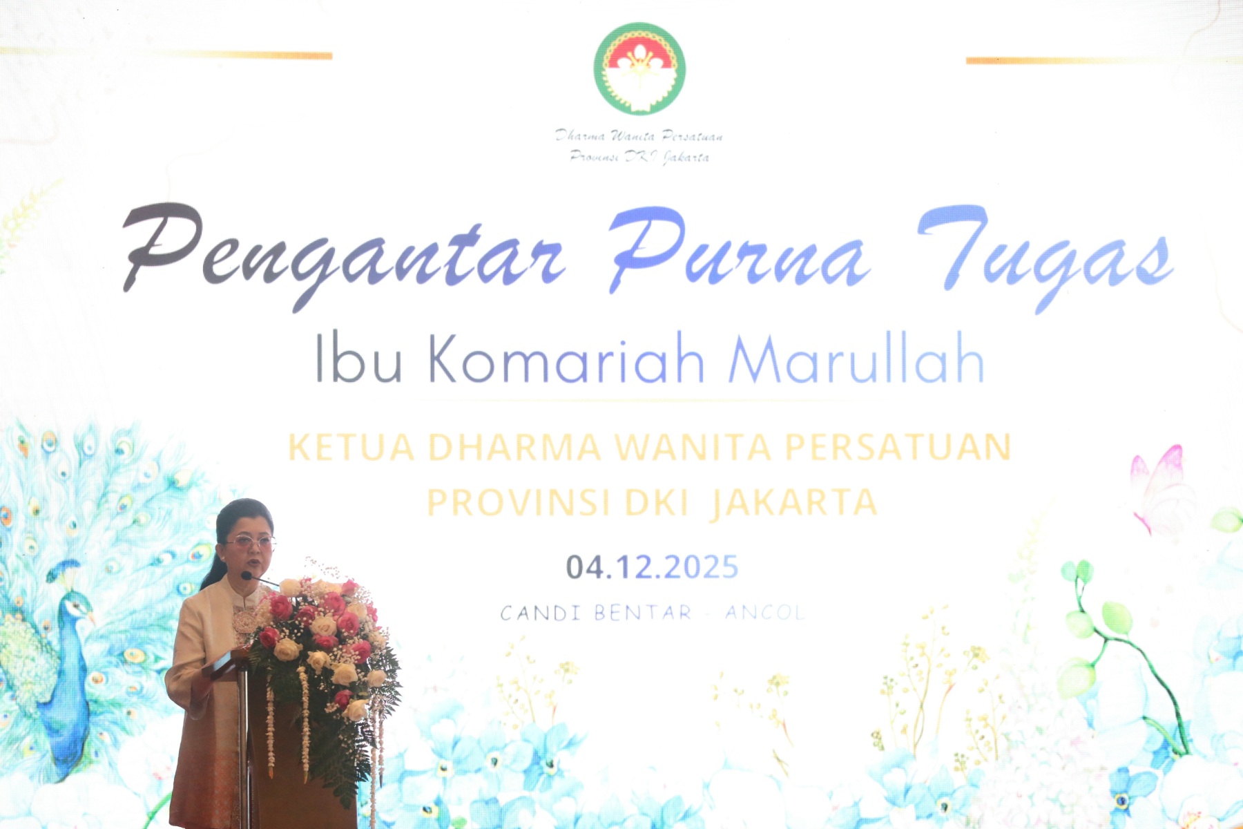 Kamis, 4 Desember 2025 bertempat di Candi Bentar Hall, Putri Duyung Ancol Jakarta Utara, Dharma Wanita Persatuan Provinsi DKI Jakarta menyelenggarakan kegiatan Pengantar Purna Tugas Ibu Komariah Marullah, Ketua DWP DKI Periode Tahun 2024 – 2025. Hadir pada acara tersebut Penasihat DWP Provinsi DKI Jakarta, Ibu Hani Pramono Anung, Ibu Dewi Rano, Ketua DWP DKI antar waktu Periode 2024 – 2029 Ibu Lisye Uus, para Ketua DWP UP, Ketua DWP Kota/Kabupaten, para Isteri Direktur BUMD DKI Jakarta dan para anggota DWP Provinsi DKI Jakarta.