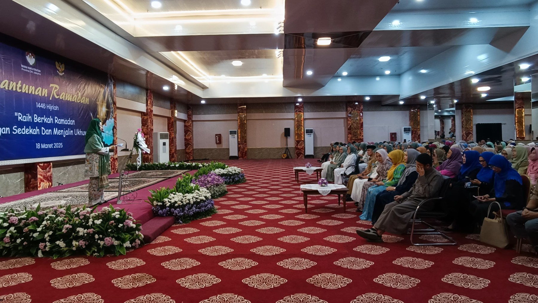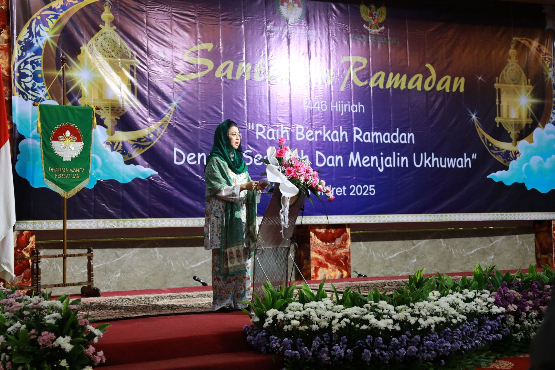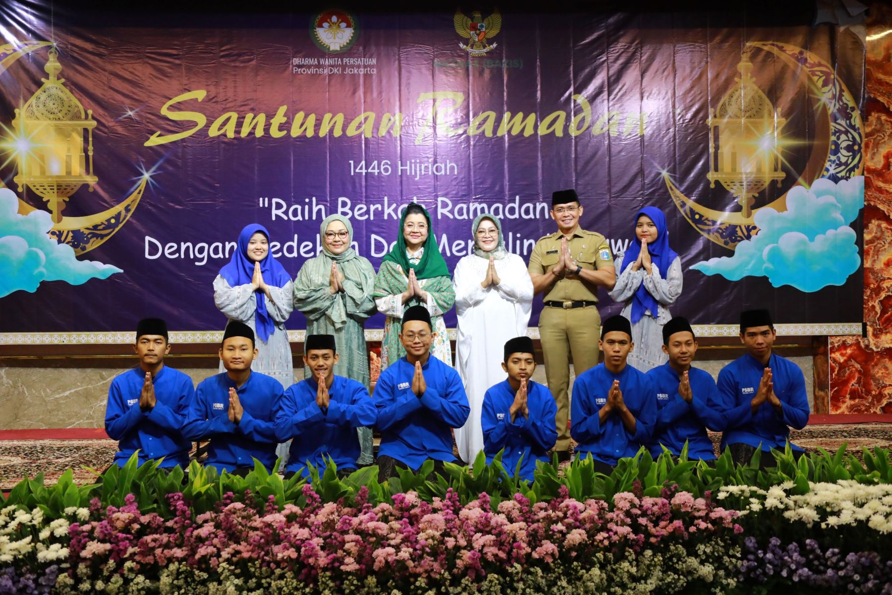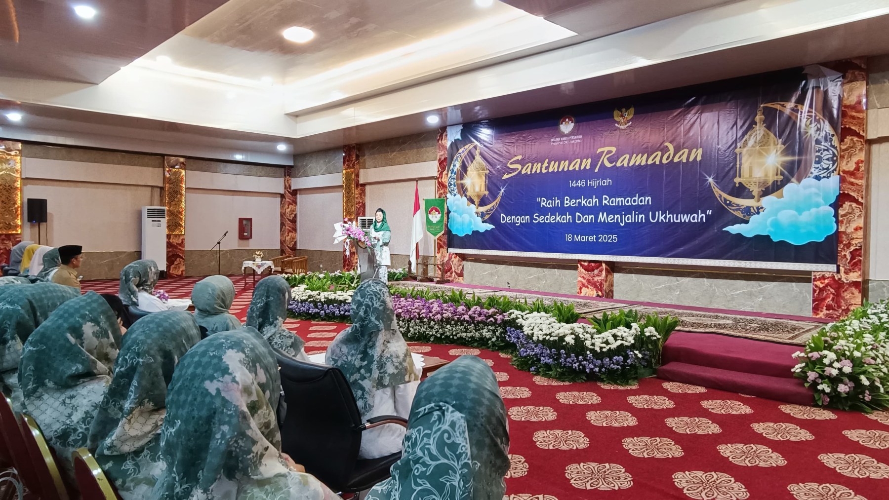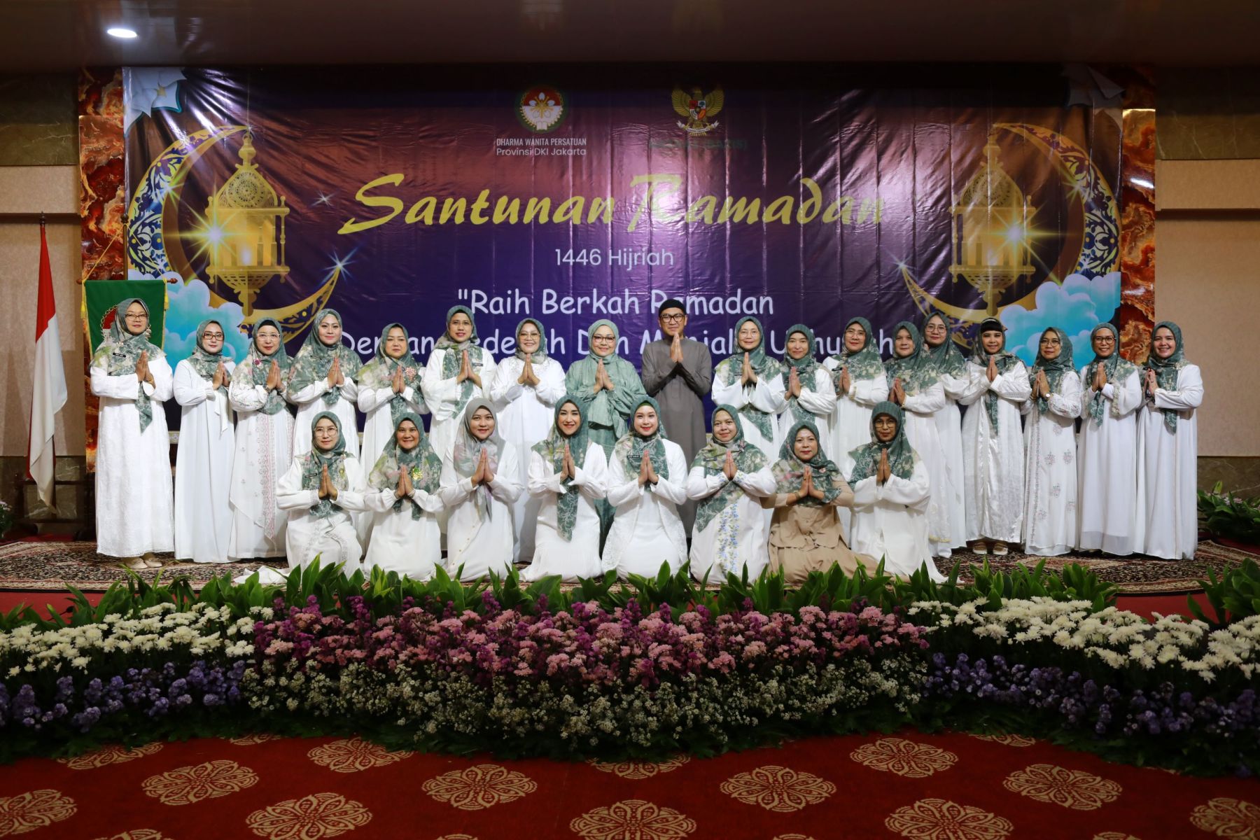 Selasa, 18 Maret 2025 Dharma Wanita Persatuan Provinsi DKI Jakarta bersama Baznas(Bazis) melaksanakan kegiatan santunan ramadan 1446 H. Bertempat di Aula Gedung Nyi Ageng Serang Kuningan Jakarta Selatan hadir Penasihat DWP Provinsi DKI Jakarta Ibu Hani Pramono dan Ibu Dewi Rano yang memberikan santunan berupa uang tunai dan paket sembako kepada 10 orang penerima sebagai perwakilan dari 646 orang yatim, janda, pensiunan, dhuafa dan PJLP. Kegiatan di isi dengan hadroh, pembacaan qalam ilahi dan tausiah oleh Ustadz Oemar Mita.