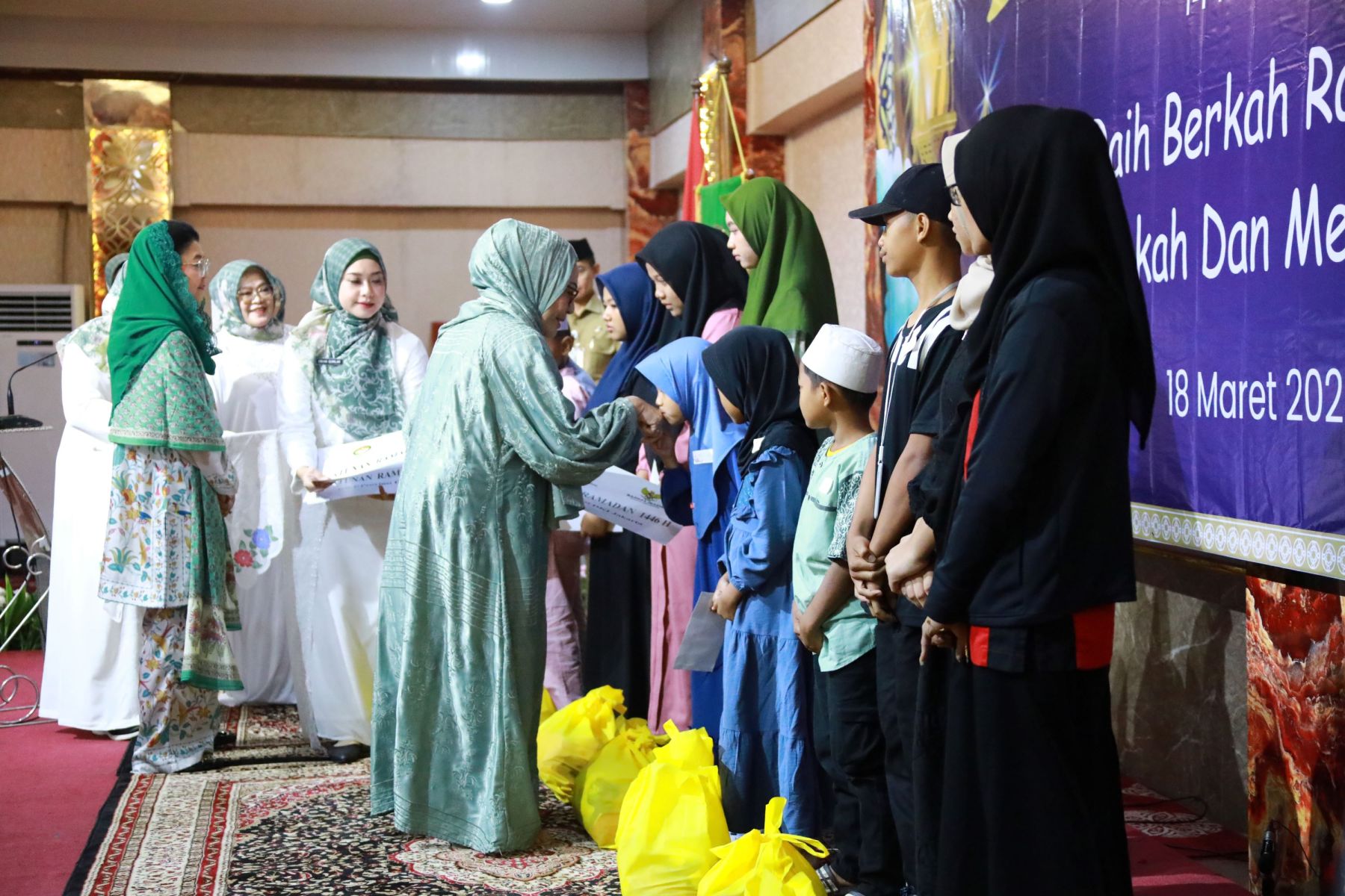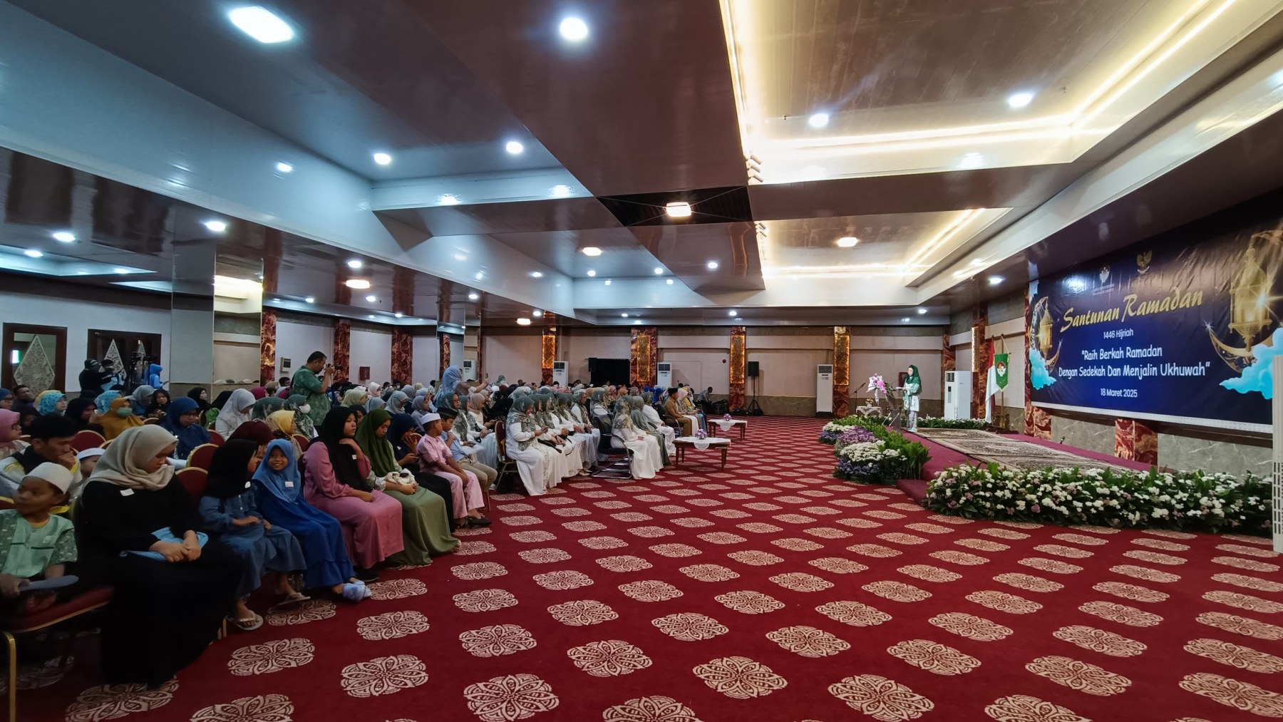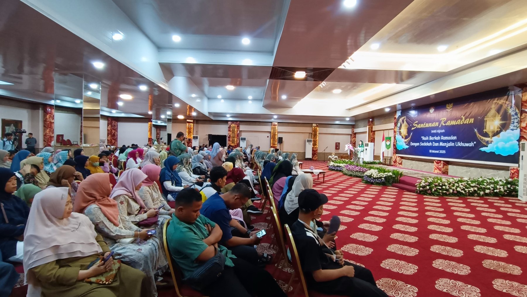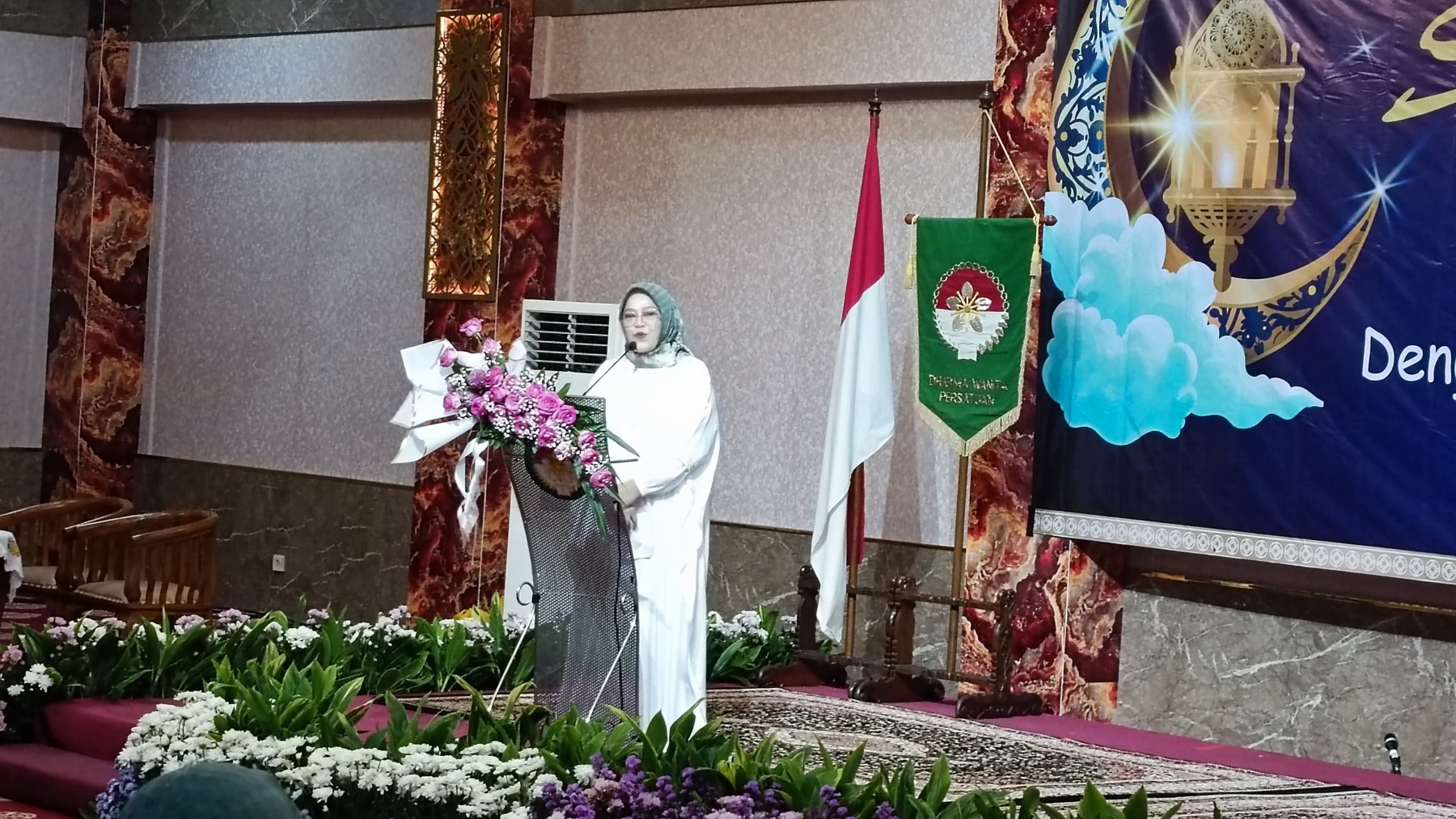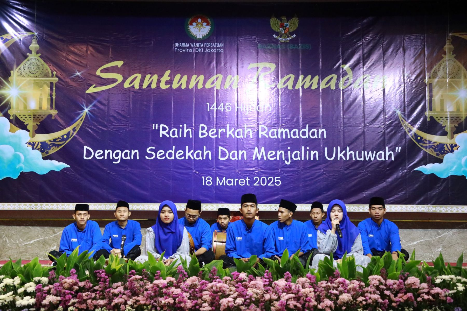Selasa, 18 Maret 2025 Dharma Wanita Persatuan Provinsi DKI Jakarta bersama Baznas(Bazis) melaksanakan kegiatan santunan ramadan 1446 H. Bertempat di Aula Gedung Nyi Ageng Serang Kuningan Jakarta Selatan hadir Penasihat DWP Provinsi DKI Jakarta Ibu Hani Pramono dan Ibu Dewi Rano yang memberikan santunan berupa uang tunai dan paket sembako kepada 10 orang penerima sebagai perwakilan dari 646 orang yatim, janda, pensiunan, dhuafa dan PJLP. Kegiatan di isi dengan hadroh, pembacaan qalam ilahi dan tausiah oleh Ustadz Oemar Mita.