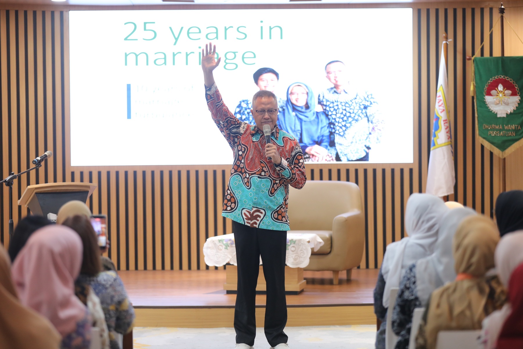 Bertempat di Aula Lantai 4 PDS HB. Jassin Taman Ismail Marzuki Jakarta Pusat pada hari Jumat 12 September 2025,Bidang Pendidikan Dharma Wanita Persatuan Provinsi DKI Jakarta menyelenggarakan kegiatan Seminar Interaktif Harmonisasi Rumah Tangga dengan tema “Bukan Sekedar Bertahan : Seni Menumbuhkan Cinta dalam Pernikahan”. Sebagai narasumber hadir Bapak Indra Novaldy – Praktisi Relationship dan Dynamic Keluarga. Kegiatan ini di ikuti oleh 150 peserta anggota DWP Provinsi DKI Jakarta serta bekerjasama dengan Dinas Perpustakaan dan Kearsipan Provinsi DKI Jakarta, PDS HB. Jassin, Dinas Komunikasi, Informasi dan Statistik Provinsi DKI Jakarta, PT. JIEP, PT. MRT dan Bank Jakarta.