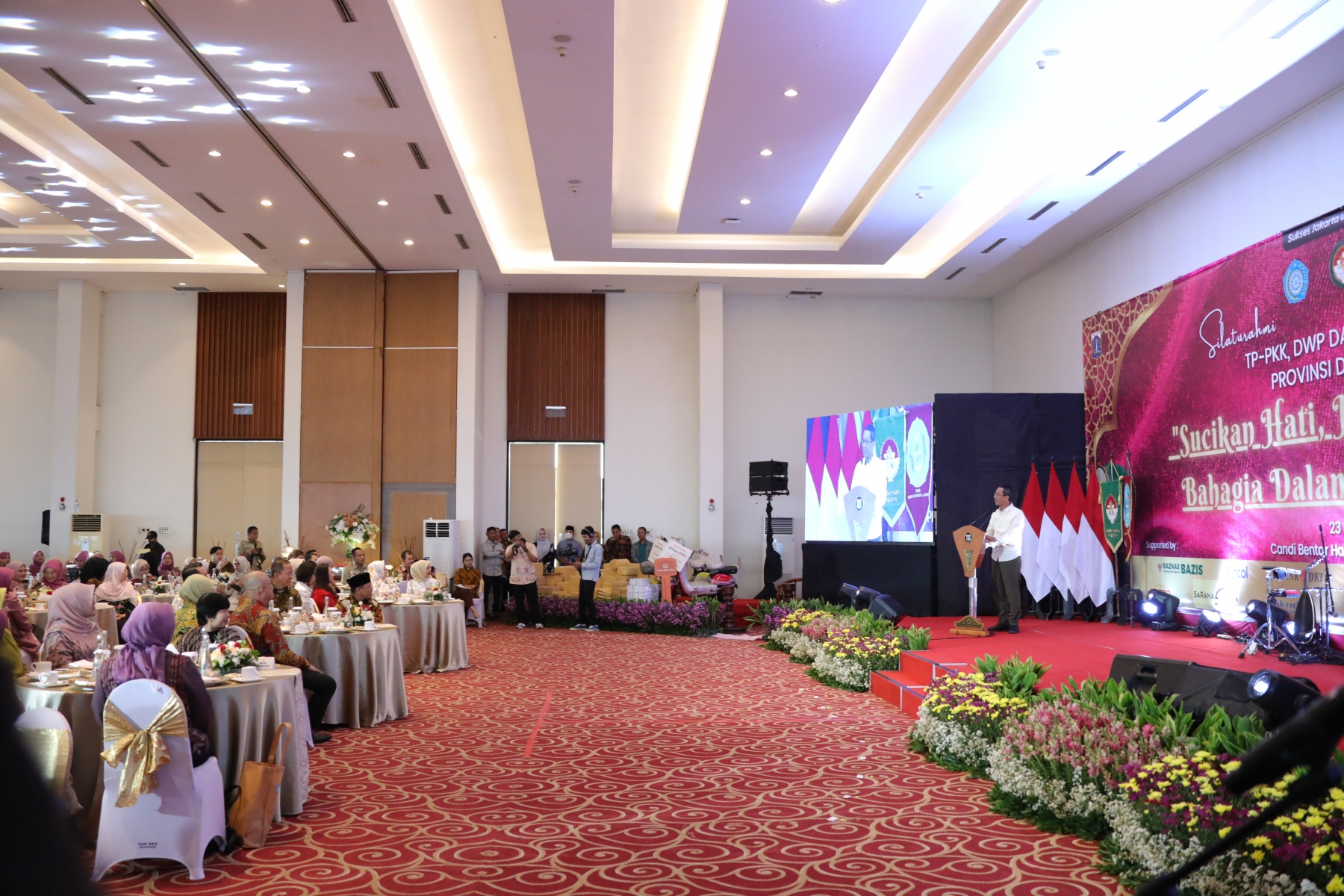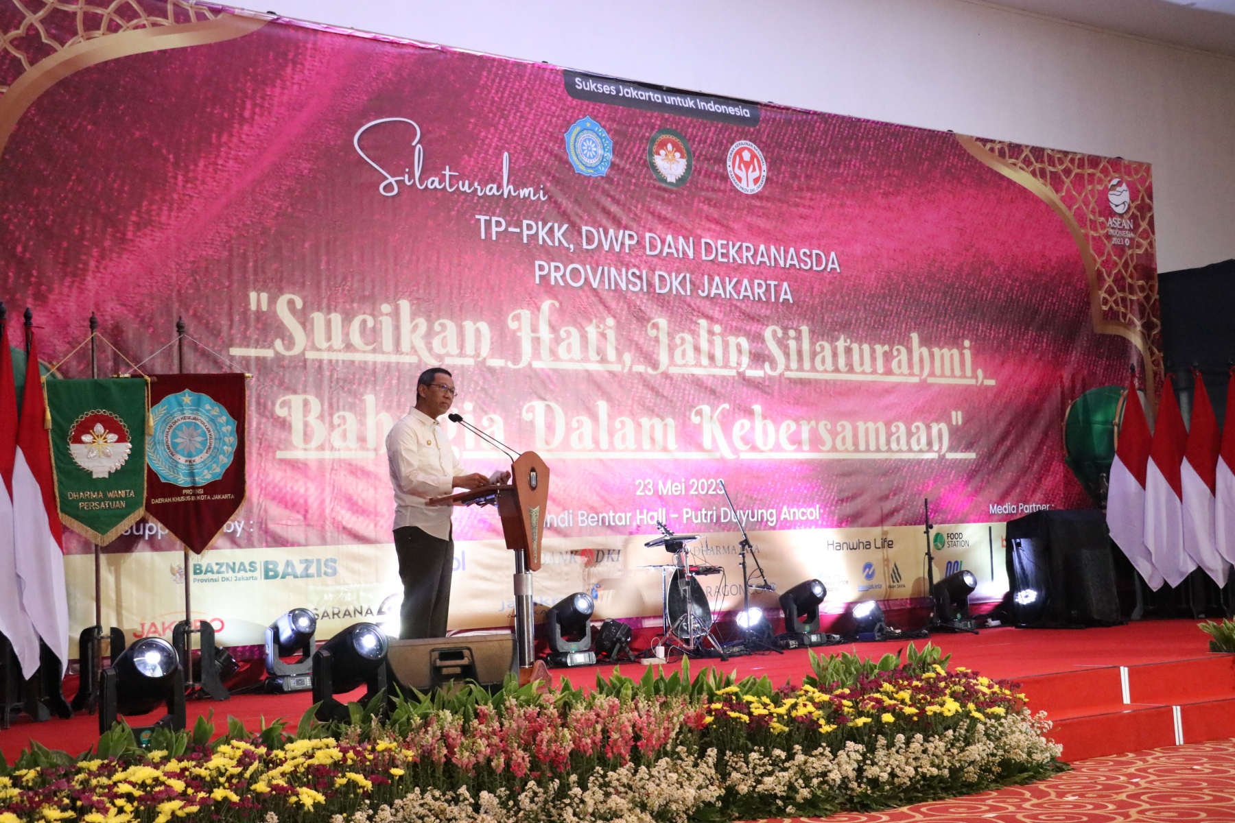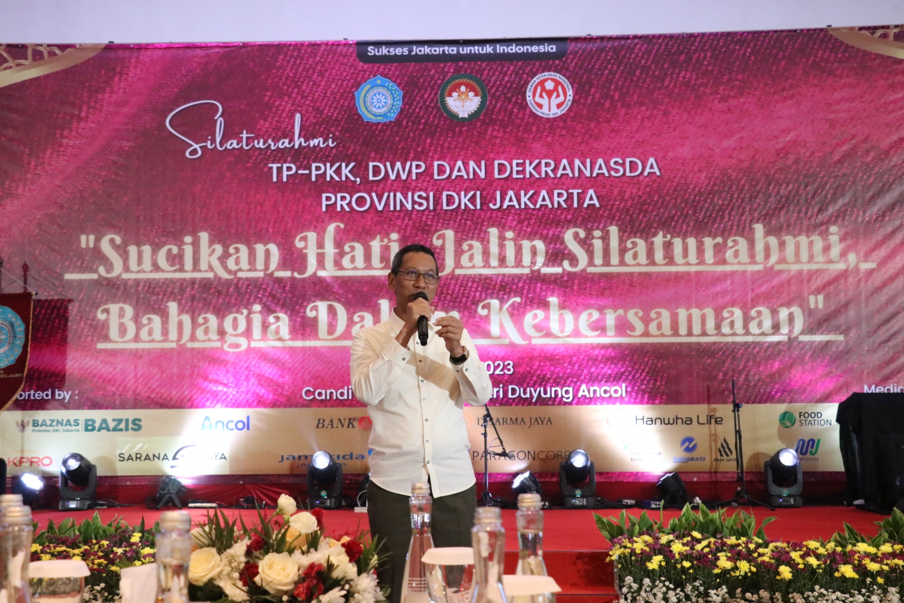 Acara silaturahmi hari ini mengusung tema ‘Sucikan Hati, Jalin Silaturahmi Bahagia dalam Kebersamaan’. Dalam sambutannya, Pj Gubernur mengapresiasi TP-PKK, DWP, serta Dekranasda, yang selama ini menjadi mitra pemerintah dalam pemberdayaan kaum perempuan. Ke depannya, Heru mengajak seluruh pihak bergerak bersama dalam penurunan angka stunting serta mewujudkan kesejahteraan keluarga.