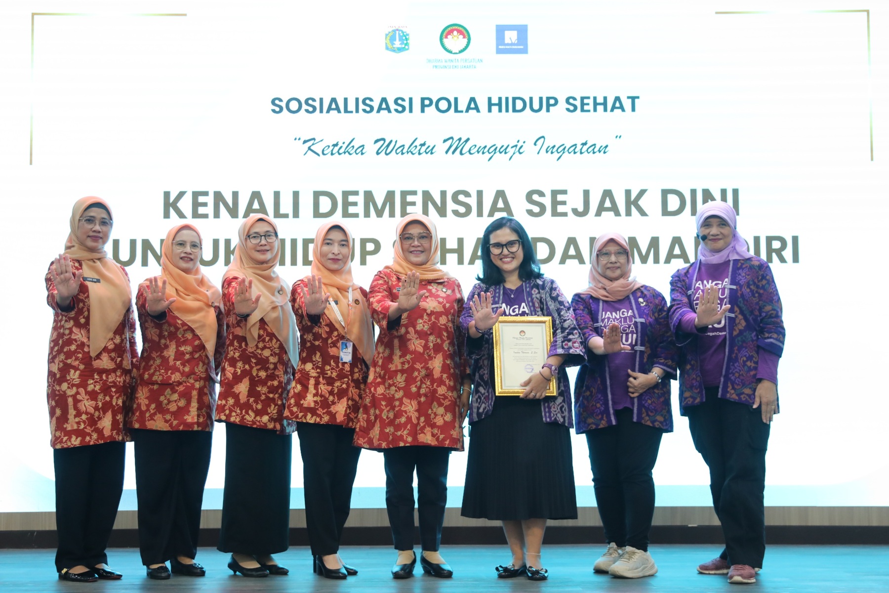 Kembali Bidang Pendidikan Dharma Wanita Persatuan Provinsi DKI Jakarta melaksanakan program kerja berupa kegiatan Sosialisasi Pola Hidup yang bertema “Kenali Demensia Sejak Dini untuk Hidup Sehat dan Mandiri”. Bertempat di Grha Ali Sadikin Balai Kota DKI Jakarta, hadir 150 orang anggota DWP Provinsi DKI Jakarta. Kegiatan ini mengundang Ibu Imelda Theresia dari LSM Alzheimer Indonesia (ALZI) sebagai Narasumber.